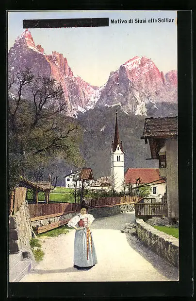 AK Siusi allo Sciliar, Weg zur Kirche mit Frau