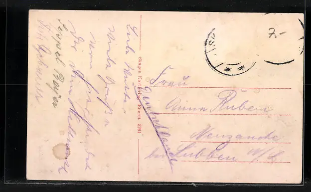 alte Ansichtskarte, gelaufen, Briefmarke entfernt, rückseitig Klebe- und Papierreste, rückseitig Oberflächenschaden, Stempelspur, guter Zustand
