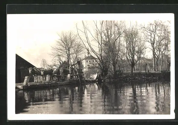 AK Skalka, Uferpartie mit Ochsenwagen
