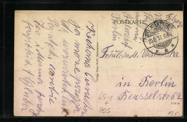 alte Ansichtskarte, gelaufen 1917 als Feldpost, guter Zustand