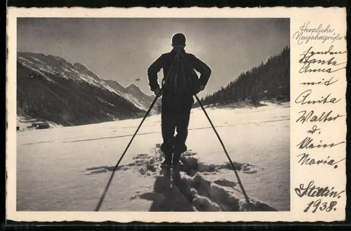AK Skifahrer blickt der Sonne entgegen