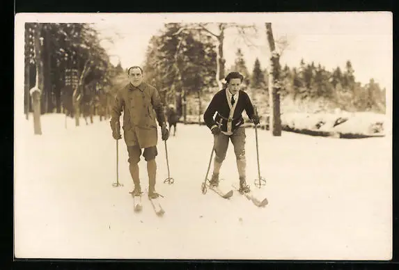 AK Skiläufer am schneebedeckten Waldrand
