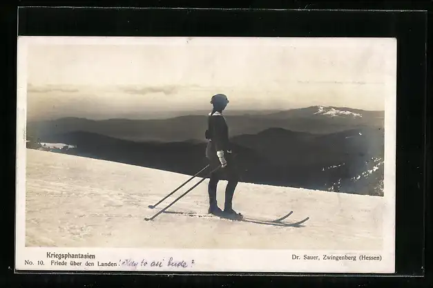 AK Skiläuferin auf einer Hochgebirgs-Ebene