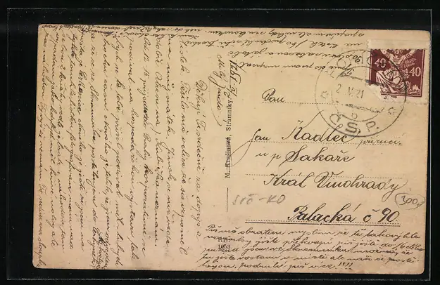 gelaufen 1921, Eckknick li. unten, guter Zustand