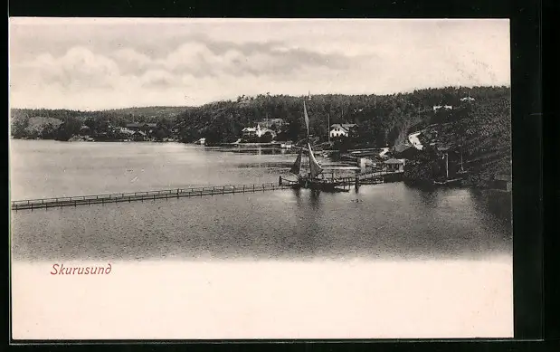 AK Skurusund, Ortspartie mit Anlegestelle und Segelboot
