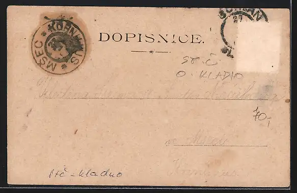 alte Ansichtskarte, gelaufen, Briefmarke entfernt, guter Zustand