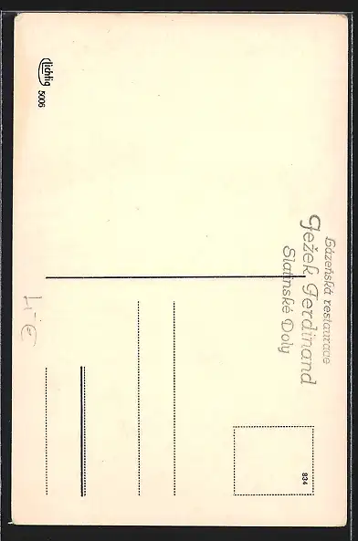 Personenbezogene Daten auf der Rückseite der Karte wurden durch blauen Textmarker unkenntlich gemacht. Die blauen Stellen sind auf die Vorderseite durchgeweicht und wirken sich negativ auf das Postkartenfoto aus