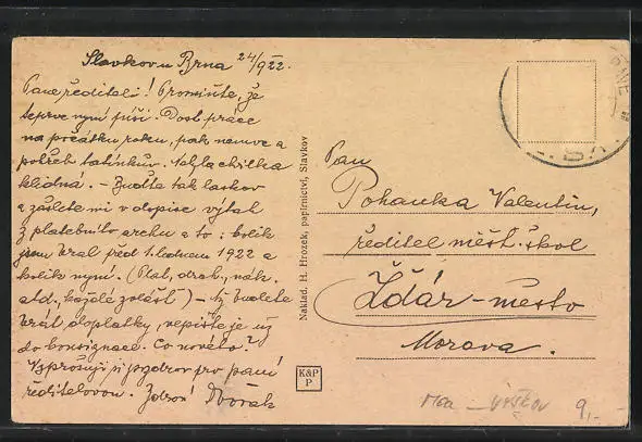 gelaufen 1922, Briefmarke entfernt, guter Zustand