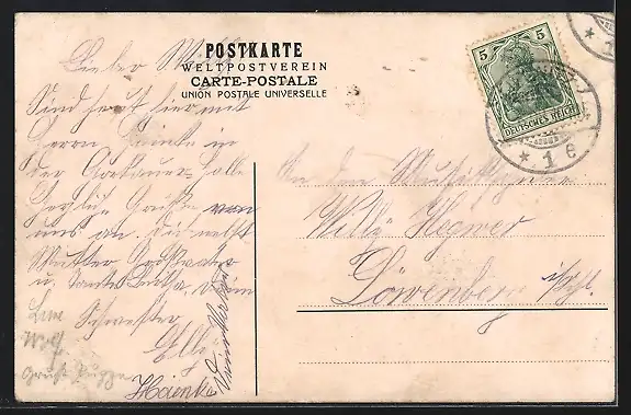 alte Ansichtskarte, gelaufen, Bugspur unten, guter Zustand