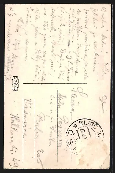 Personenbezogene Daten auf der Rückseite der Karte wurden durch blauen Textmarker unkenntlich gemacht. Die blauen Stellen sind auf die Vorderseite durchgeweicht und wirken sich negativ auf das Postkartenfoto aus