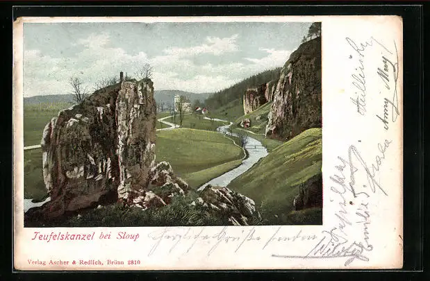 AK Sloup, Teufelskanzel gegen Ortschaft