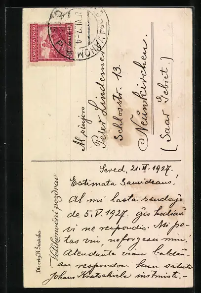 gelaufen 1927, Eckknicke re. oben, guter Zustand