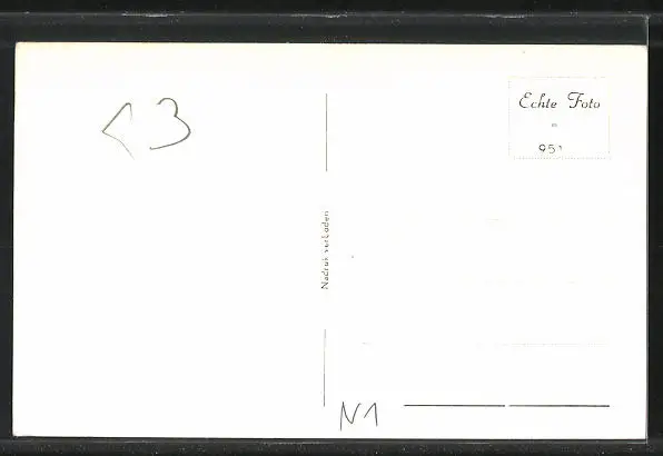 Personenbezogene Daten auf der Rückseite der Karte wurden durch blauen Textmarker unkenntlich gemacht. Die blauen Stellen sind auf die Vorderseite durchgeweicht und wirken sich negativ auf das Postkartenfoto aus