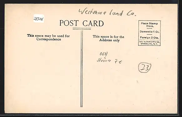 Personenbezogene Daten auf der Rückseite der Karte wurden durch blauen Textmarker unkenntlich gemacht. Die blauen Stellen sind auf die Vorderseite durchgeweicht und wirken sich negativ auf das Postkartenfoto aus
