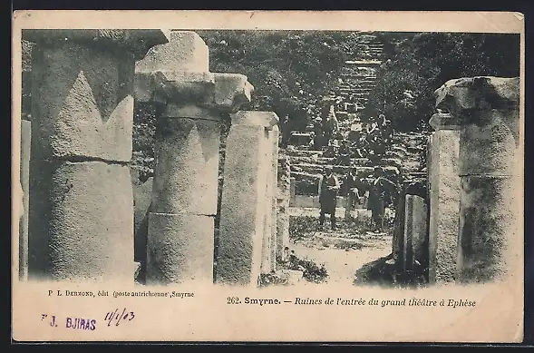 AK Smyrne, Ruines de l`entrée du grand théâtre à Ephèse