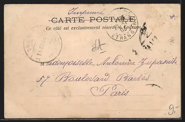 alte Ansichtskarte, gelaufen, Briefmarke entfernt, guter Zustand
