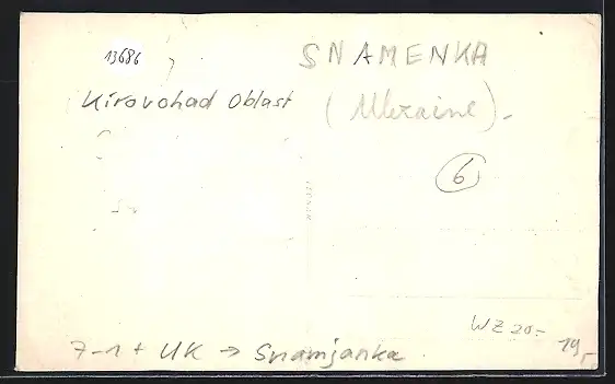 Personenbezogene Daten auf der Rückseite der Karte wurden durch blauen Textmarker unkenntlich gemacht. Die blauen Stellen sind auf die Vorderseite durchgeweicht und wirken sich negativ auf das Postkartenfoto aus