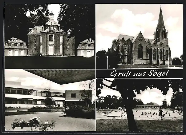 AK Sögel /Emsland, Kirche, Schloss und Freibad