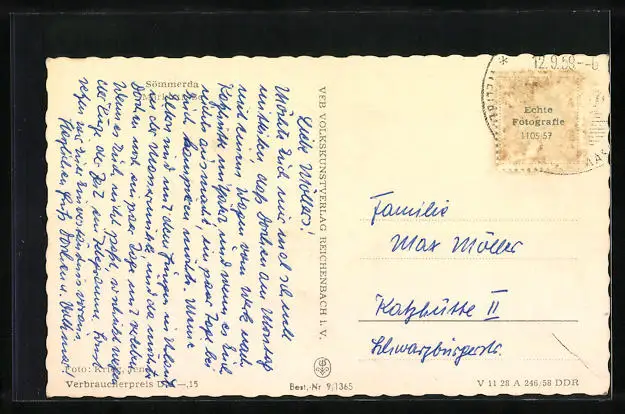 alte Ansichtskarte, gelaufen 1959, Briefmarke entfernt, guter Zustand