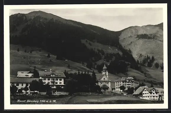 AK Sörenberg, Ortsansicht mit Kirche vor Bergpanorama