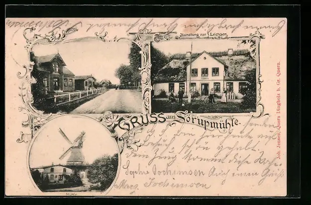 AK Sörupmühle, Handlung von J. Erichsen, Windmühle, Strassenpartie