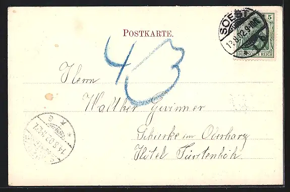 alte Ansichtskarte, gelaufen 1902, Stempelspur, guter Zustand