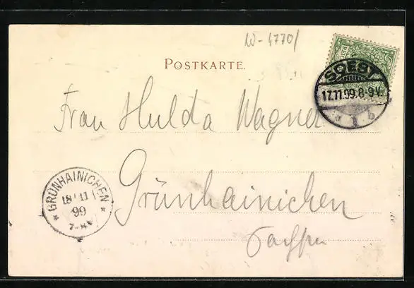 alte Ansichtskarte, gelaufen 1899, Stempelspur, guter Zustand