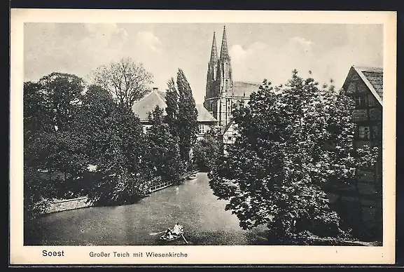 AK Soest, Grosser Teich mit Wiesenkirche