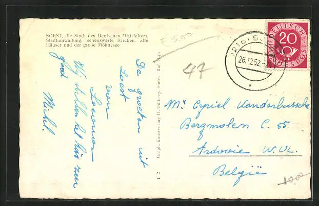 gelaufen 1952, rückseitig Oberflächenschaden, Eckknick re. oben, guter Zustand