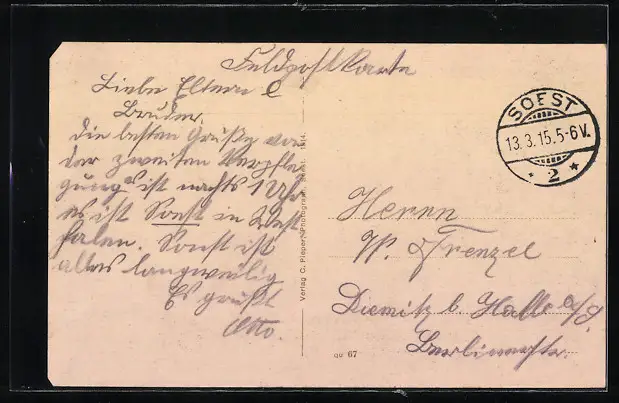 alte Ansichtskarte, gelaufen 1915, Eckschaden re. oben, guter Zustand