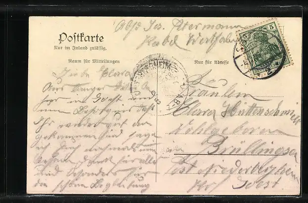 alte Ansichtskarte, gelaufen 1906, guter Zustand