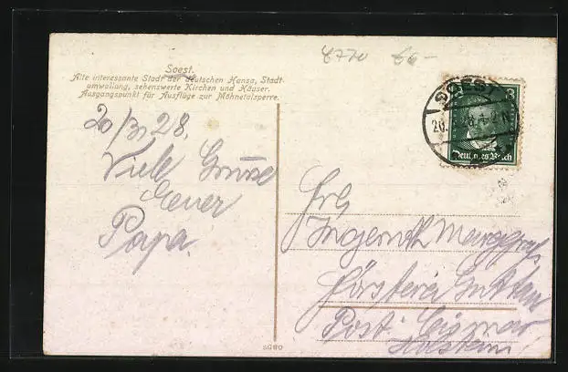 alte Ansichtskarte, gelaufen 1928, Eckknick unten li., guter Zustand