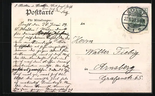 alte Ansichtskarte, gelaufen 1909, guter Zustand