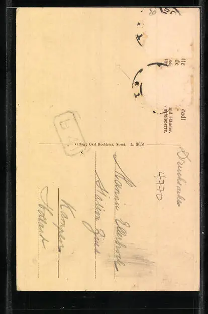 alte Ansichtskarte, gelaufen, Briefmarke entfernt, rückseitig Oberflächenschaden, guter Zustand