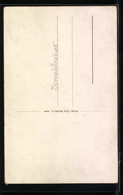 Personenbezogene Daten auf der Rückseite der Karte wurden durch blauen Textmarker unkenntlich gemacht. Die blauen Stellen sind auf die Vorderseite durchgeweicht und wirken sich negativ auf das Postkartenfoto aus