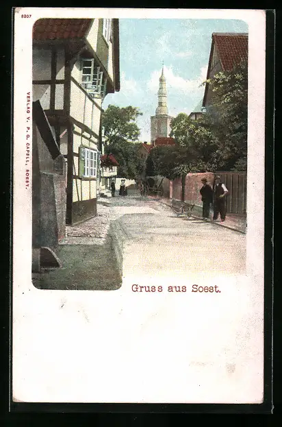 AK Soest, Strassenpartie mit Anwohnern