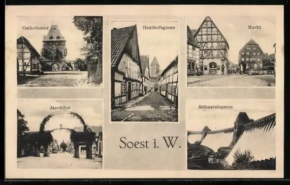 AK Soest i. W., Haarhofsgasse, Markt, Jacobitor