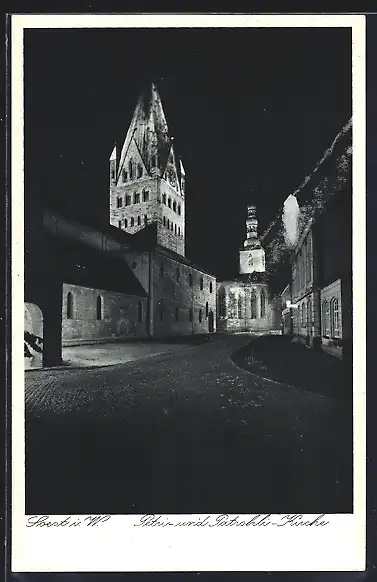 AK Soest i. W., Petri- und Patrokli-Kirche bei Nacht