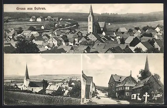 AK Sohren, Strassenpartie, Kirche, Ortsansicht