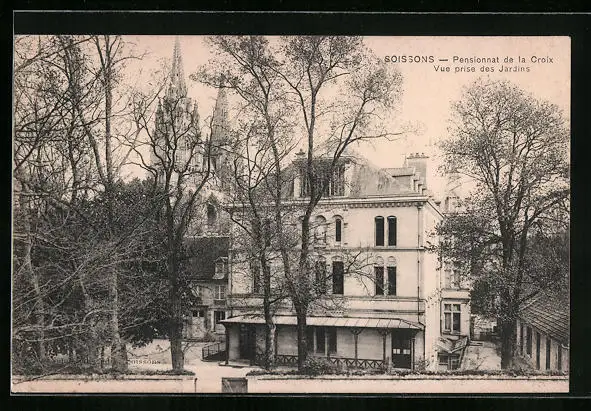 AK Soissons, Pensionnat de la Croix, Vue prise des Jardins