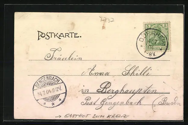 alte Ansichtskarte, gelaufen 1904, guter Zustand