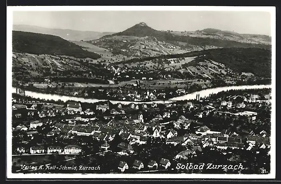 AK Solbad Zurzach, Ortsansicht mit Fluss aus der Vogelschau
