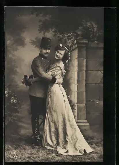 AK Soldat Arm in Arm mit Geliebter vor Parkkulisse