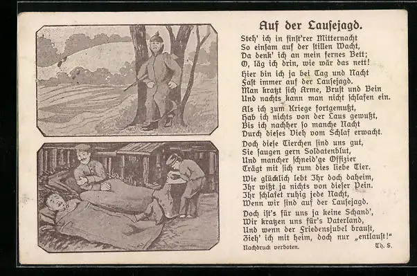 AK Soldat auf Läusejagd, Bilder, Gedicht