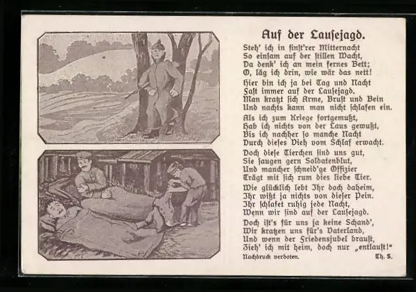 AK Soldat auf Läusejagd, Bilder u. Gedicht