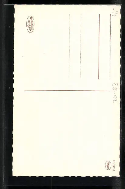 Personenbezogene Daten auf der Rückseite der Karte wurden durch blauen Textmarker unkenntlich gemacht. Die blauen Stellen sind auf die Vorderseite durchgeweicht und wirken sich negativ auf das Postkartenfoto aus
