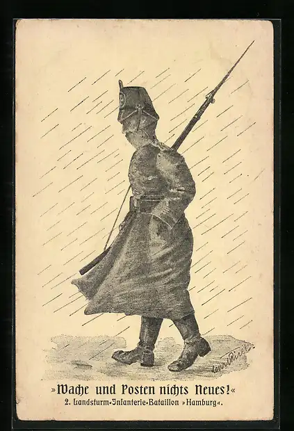 AK Soldat der Infanterie mit Gewehr im Regen