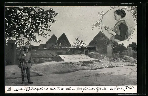 AK Soldat in Uniform, Frau mit einem Brief zu Ostern