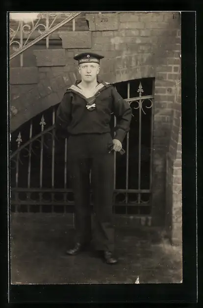 AK Soldat in Uniform, Mützenband der Matrosen-Division