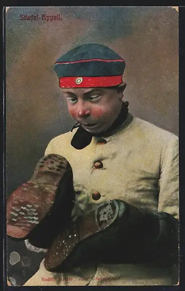 AK Soldat in Uniform beim Stiefel-Appell, Komiker
